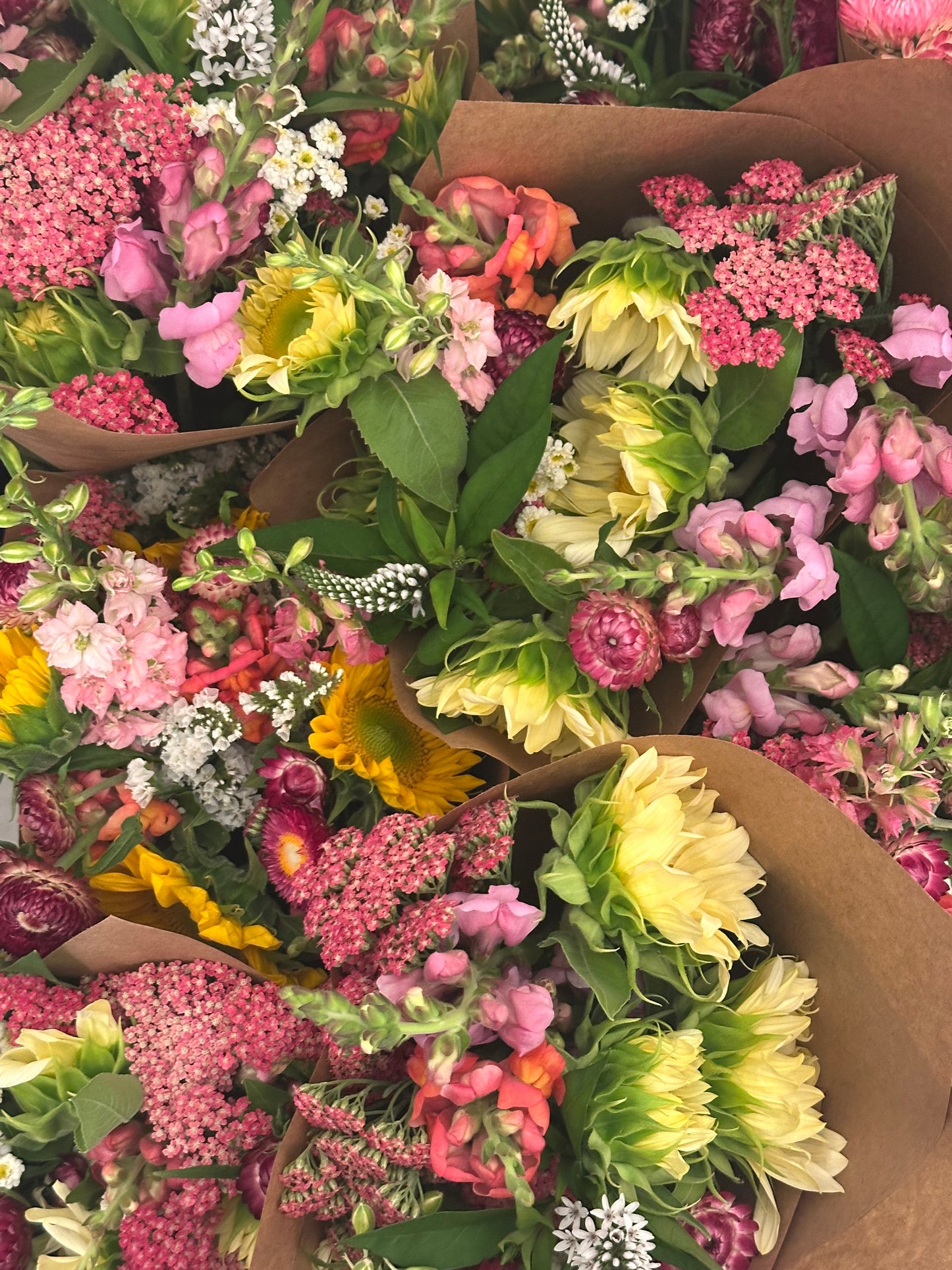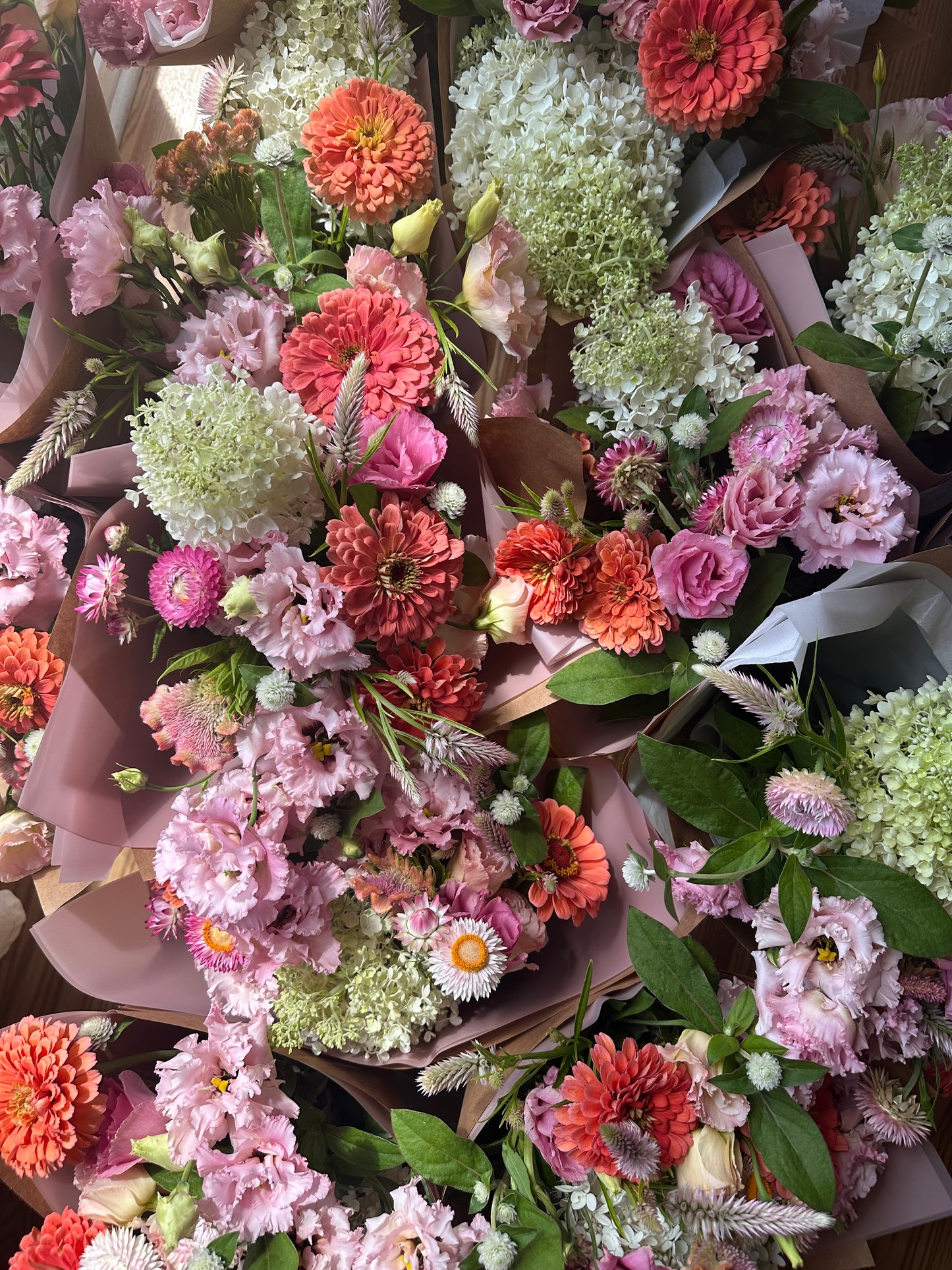 From mid-June to mid-July, enjoy five weeks of lush, garden-inspired bouquets. Expect a rotating mix of summer’s showstoppers—peonies, ranunculus, zinnias, sunflowers, and more—curated into arrangements bursting with color and life.