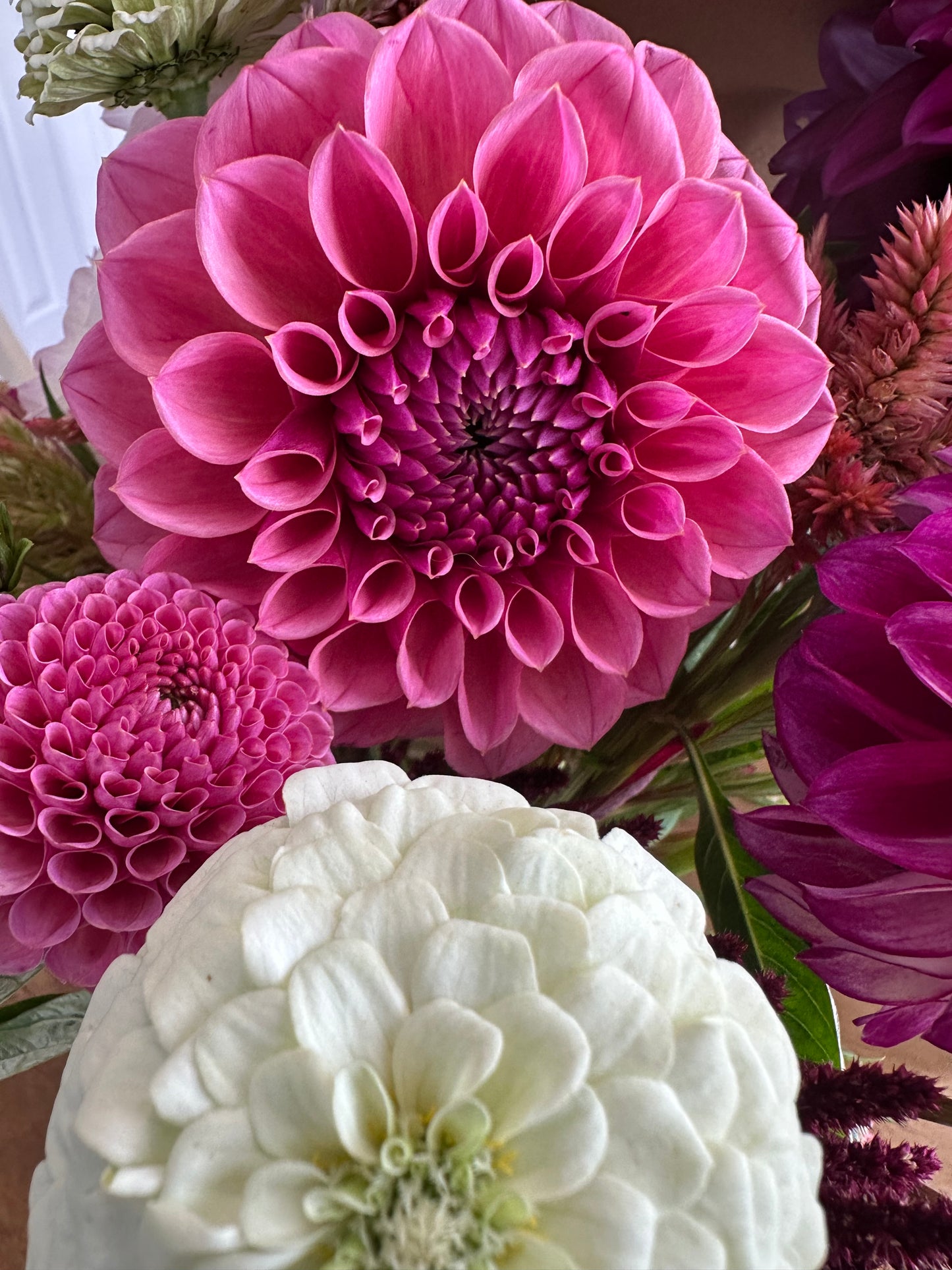 From mid-September to mid-October, enjoy five weeks of abundant, seasonal bouquets. Each week brings a cozy mix of dahlias, Lisianthus, zinnias, and textured accents like eucalyptus- perfect for filling your home with autumn’s warmth and harvest beauty.