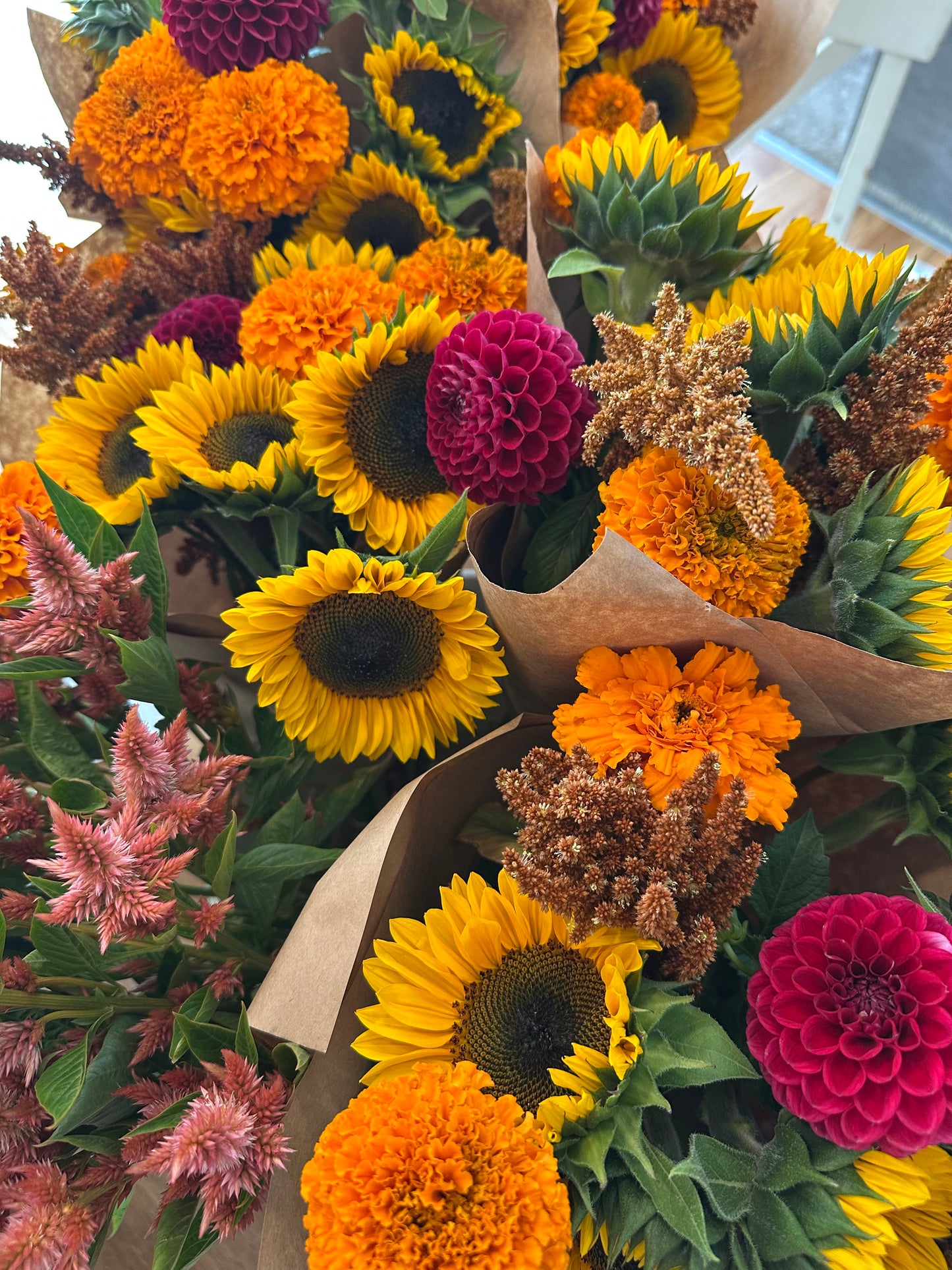 - 5 signature bouquets, brimming with organically grown fall blooms