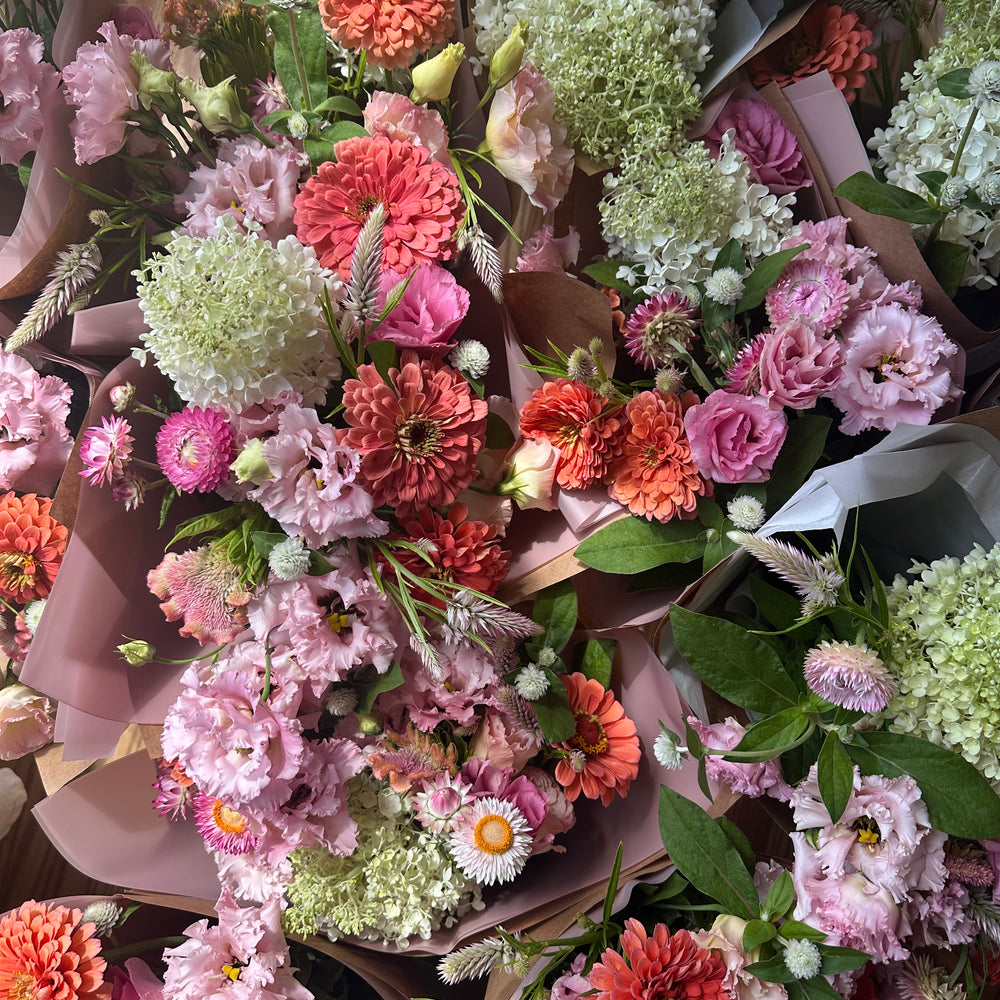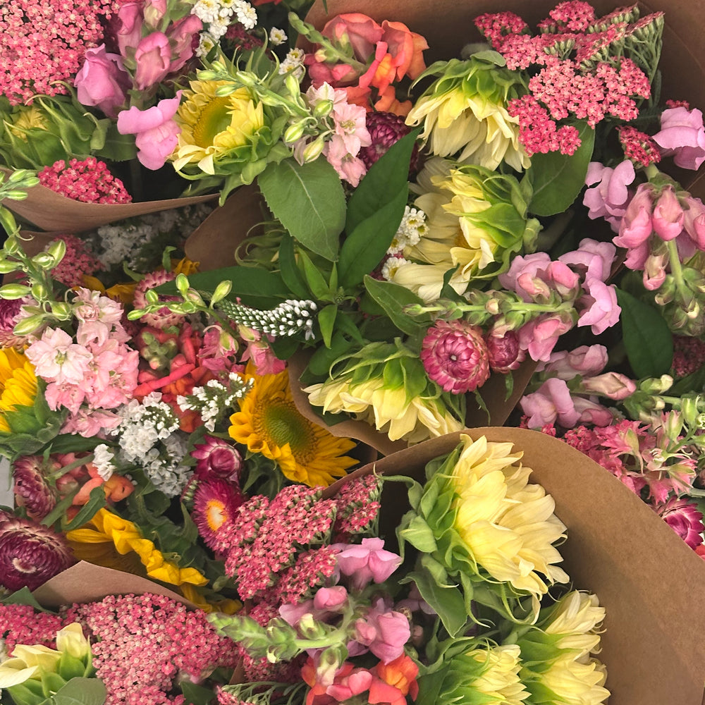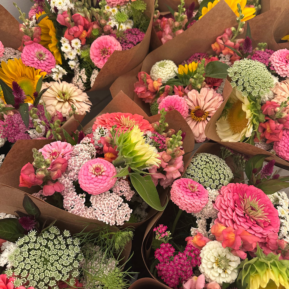 From mid-June to mid-July, enjoy five weeks of lush, garden-inspired bouquets. Expect a rotating mix of summer’s showstoppers—peonies, ranunculus, zinnias, sunflowers, and more—curated into arrangements bursting with color and life.