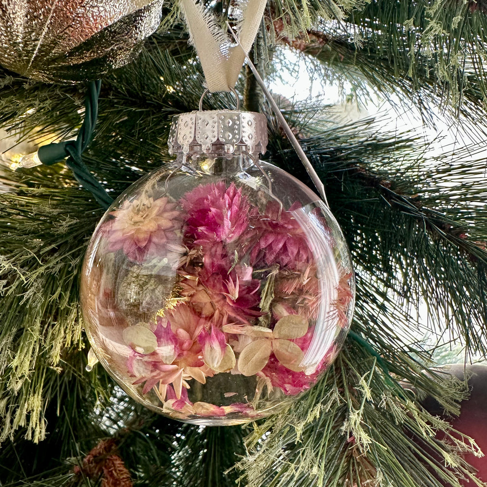 Bring a piece of the 2025 flower season into your home this Christmas with our forever floral ornaments. Each clear acrylic globe is filled with handpicked blooms grown from seed with love right here on our little flower farm.
